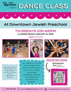 We are excited to share our after schools programs at Downtown Jewish Preschool. Tippi Toes / Amazing Athletes / Kick Boxing and Self Defense