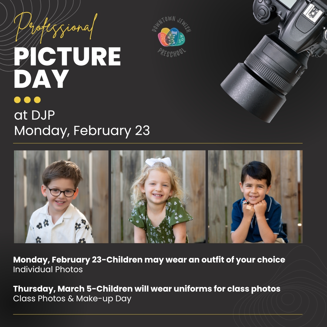 Monday, February 23 Picture Day at DJP-Individual Photos-Children may wear a outfit of your choice.